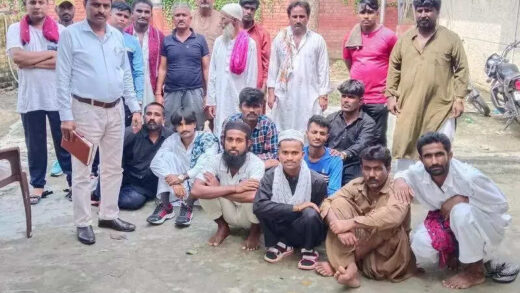 Sangrur: Members of the Zameen Prapti Sangharsh Committee on Saturday burnt effigies of the state government in the district in protest against the “dummy” auction of panchayat land at Hedike village. The committee announced it would take forcible possession of Hedike land on August 25, if the authorities failed to cancel the dummy auction. tns